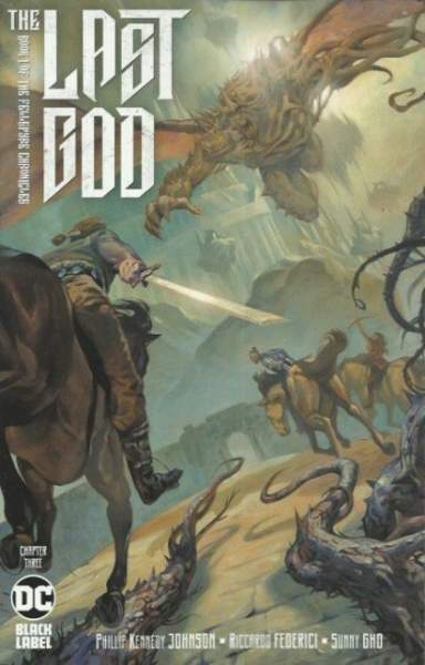 Beyond the edge of creation lies the Black Stair. And beyond it, amidst the void, he waits. Mol Uhltep, The Last God. This is the tale of those who claimed to slay him, and the world they doomed with their lies. In the third chapter of DC's dark fantasy epic The Last God, Queen Cyanthe and her unlikely companions make their way across the land of Cain Anuun toward the Pinnacle-city stronghold of the Guild Eldritch, a powerful order of sorcerers led by Skol, another fabled member of the original fellowship of Godslayers. There they hope to find protection from the looming forces of Mol Uhltep and his inhuman servant, King Tyr. In the past, we see young Tyr, Cyanthe, and Veikko Al Mun make their way toward a similar destination, while they uncover more secrets of the Last God's plan and make an unlikely ally.