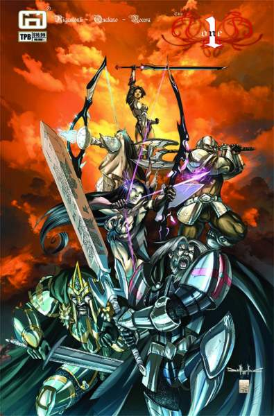 After an era of great peace, the third for power arises anew, desperate to be quenched with a tide of blood and death. War looms once more in this grim and gritty fantasy tale. With the world on the line, four heroes - Faras, Haggarth, Omir and Masdin - begin their dire quest for the glimmer of hope known as 'The One,' a legendary sword that lies waiting for the storm of battle! Collects issues #1-5.