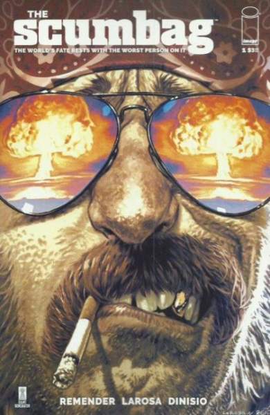 'JAZZ APPLE ARMAGEDDON,' Part One: The fate of the world rests in the hands of the worst person on it! NEW ONGOING SERIES from the writer of DEADLY CLASS! RICK REMENDER launches an all-new comedy espionage series, THE SCUMBAG-the story of Ernie Ray Clementine, a profane, illiterate, drug-addicted biker with a fifth-grade education. He's the only thing standing between us and total Armageddon because this dummy accidentally received a power-imbuing serum, making him the world's most powerful super spy. This new ongoing series will feature a murderers' row of all-star artistic talent rotating each issue. The first issue showcases the stunning work of LEWIS LaROSA, with subsequent chapters and covers by brilliant talents such as ANDREW ROBINSON, ERIC POWELL, TULA LOTAY, WES CRAIG, ROLAND BOSCHI, SIMONE DI MEO, MARGUERITE SAUVAGE, DUNCAN FEGREDO, YANICK PAQUETTE, MIKE McKONE, DAVE JOHNSON, MORENO DINISIO, and many more!